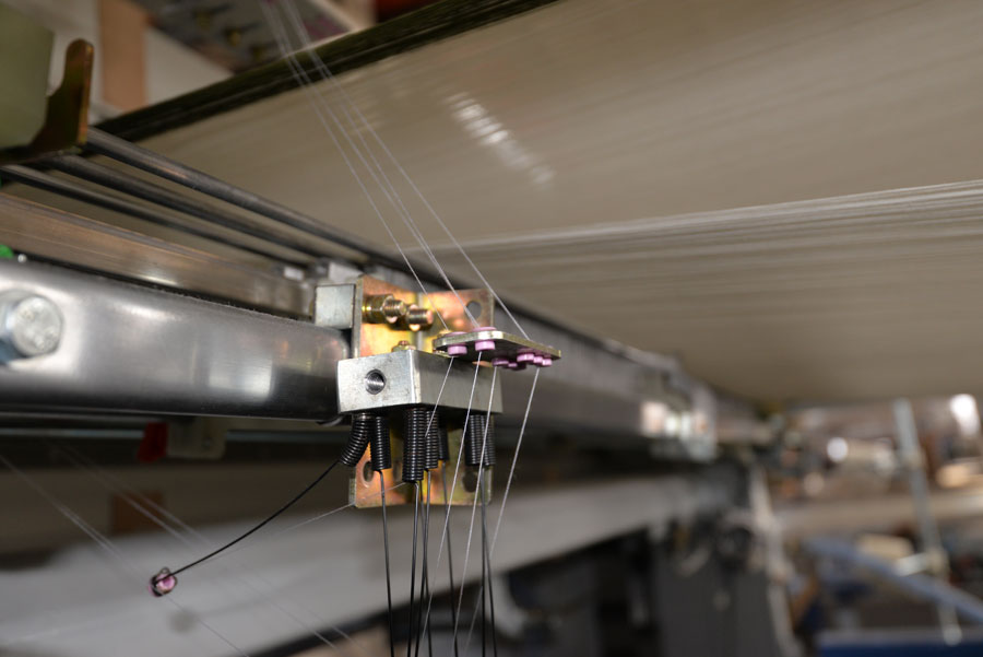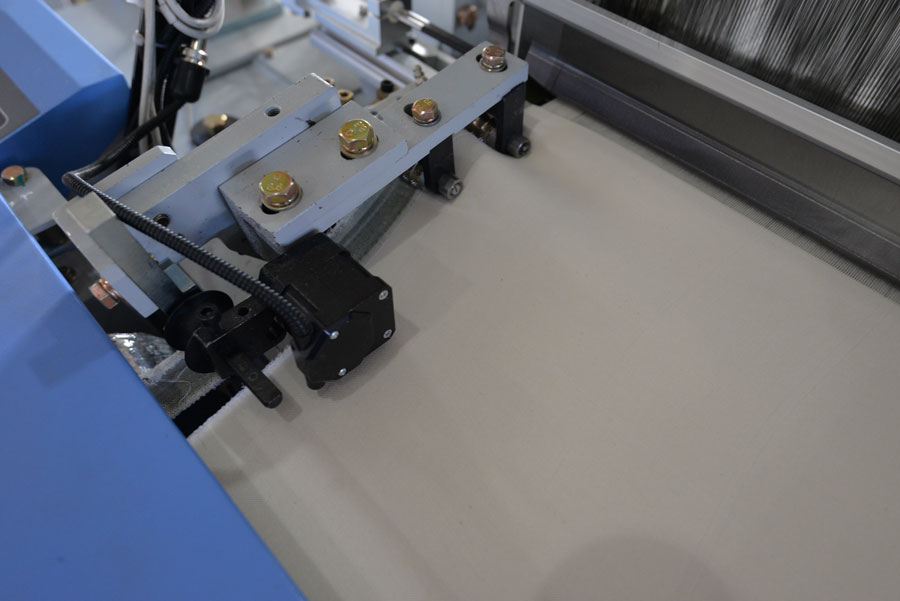 該產(chǎn)品可以織造經(jīng)起絨絨布組織要求的雙層布織物,上下兩層之間有一定高度的絨經(jīng),后經(jīng)過割絨機(jī)將其割開形成兩塊絨布。該產(chǎn)品采用智能化絨布噴氣織機(jī)專用控制系統(tǒng),可以實(shí)現(xiàn)電子送經(jīng)(地經(jīng)、絨經(jīng)分別控制)、電子控制起絨、電子多臂開口、電子控制管道片式噴氣引緯等功能,在織造過程中可以保持張力穩(wěn)定、絨高織造控制精確,采用噴氣式引緯方式不會(huì)與經(jīng)紗邊紗摩擦產(chǎn)生毛板,管道片接力引緯更能夠提高引為效率和降低能耗。